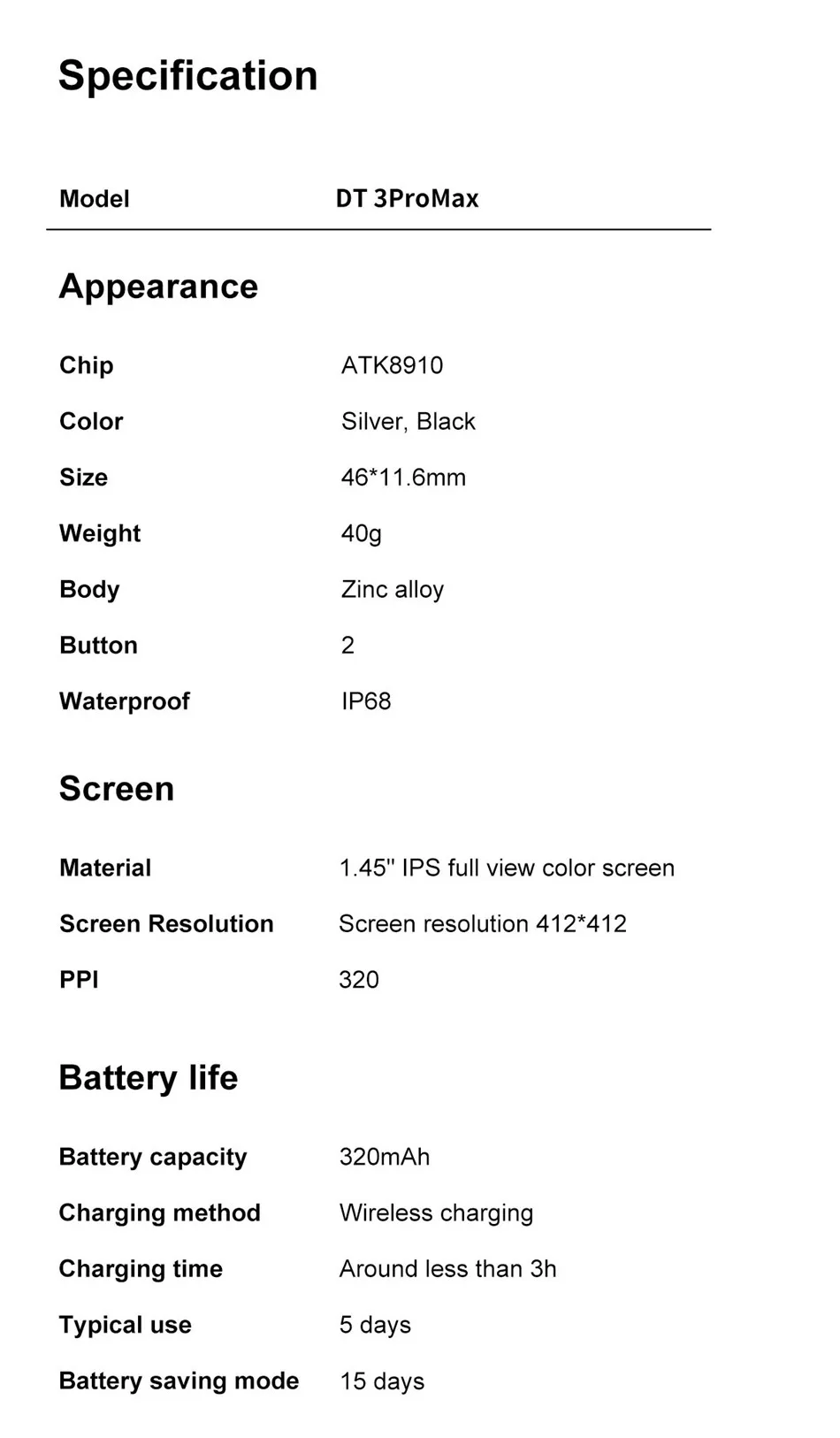 Duração da bateria: 4-5 dias para uso de conexão normal, 10-15 dias para espera. (O uso real pode variar devido a diferenças de produto, hábitos do usuário e variáveis ambientais.)