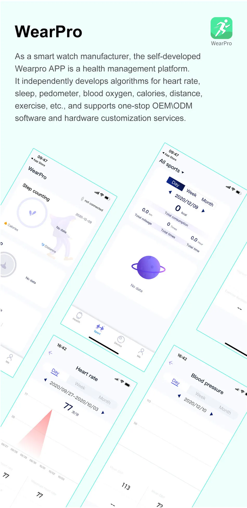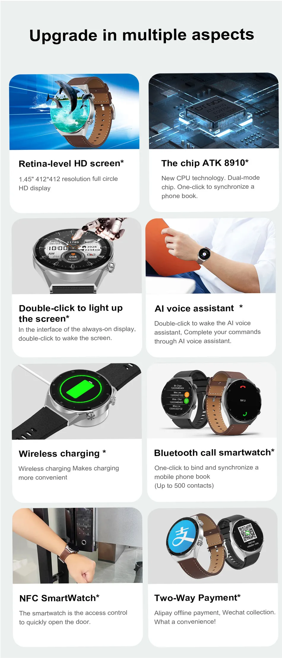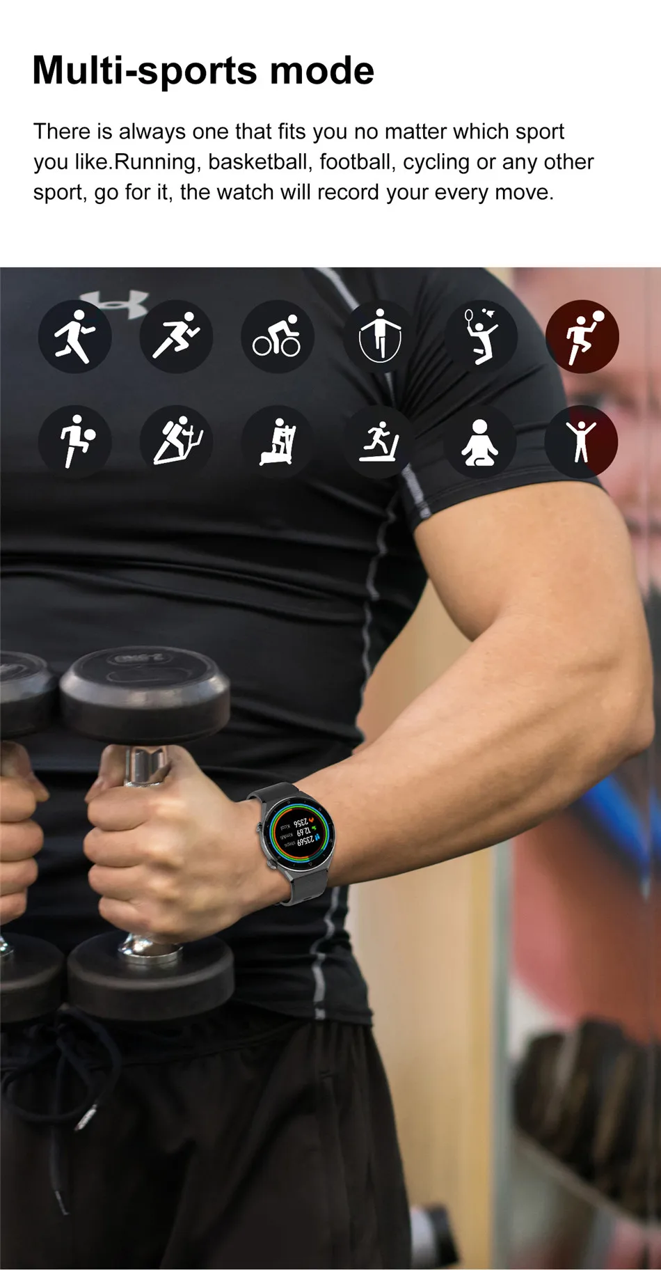 NFC, treinamento de respiração, dial push, cronômetro, ajuste de brilho, modo multi-esporte, sono, freqüência cardíaca, informação, música remota, foto remota, tempo, pesquisa de celular (conectada a um celular), chamada Bluetooth, reprodução de música Bluetooth, proteção por senha, calculadora, Tela dividida, Widget rápido, Tempo, Massageador, Meu Código QR