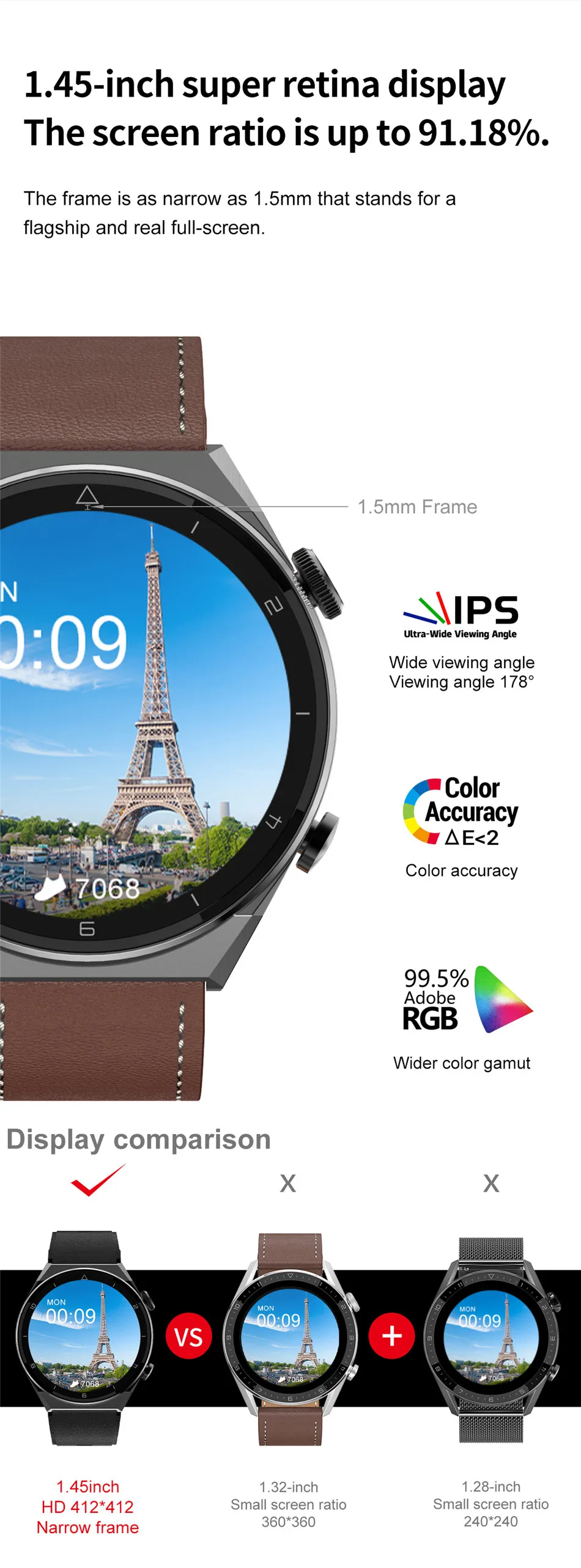 Tela tipo: AMOLED visão cheia tela colorida ângulo