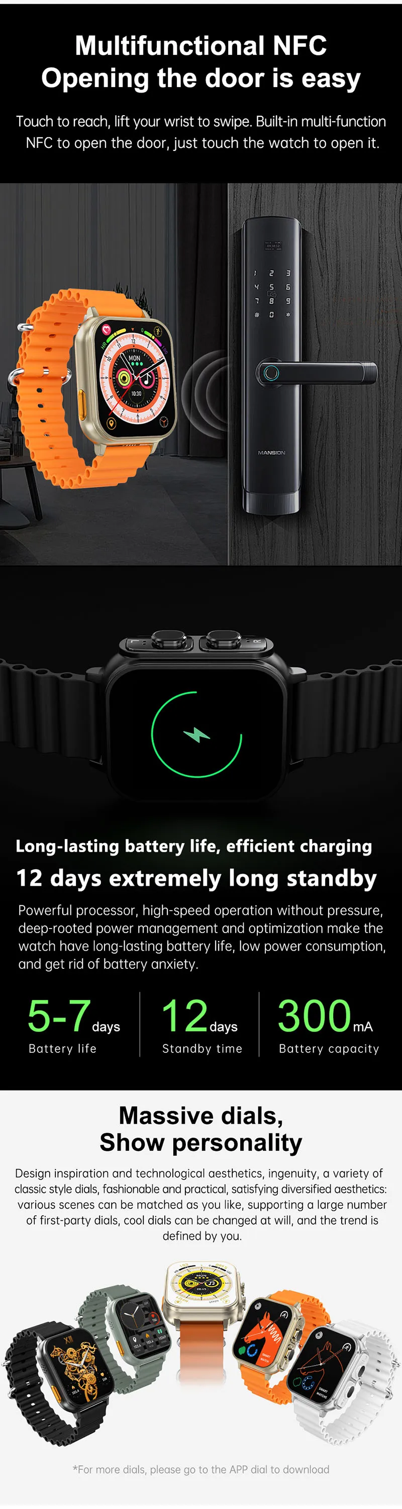 3. Grande memória e longa duração da bateria: Amplo armazenamento com 128MB de memória, permitindo que vários estilos dinâmicos sejam armazenados no dispositivo. O relógio inteligente utiliza um novo algoritmo de nó inteligente de baixa potência, Proporcionando um tempo de uso típico de 3 dias e uma impressionante duração da bateria de até 12 dias. O botão rotativo melhora a experiência do usuário, acomodando preferências pessoais e hábitos diários.