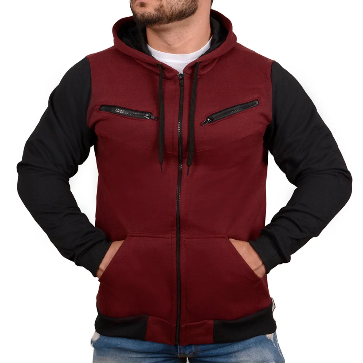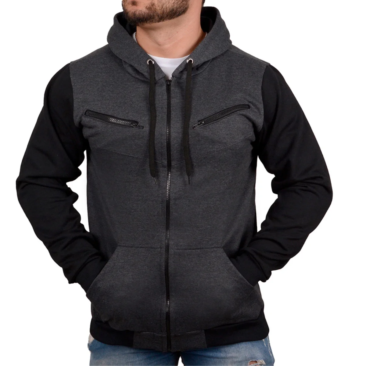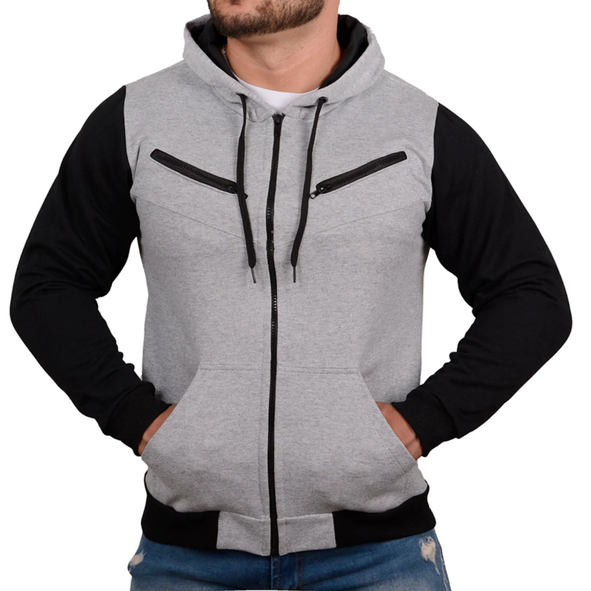 -Modelo: moletom com zíper flanelado com capuz e bolso